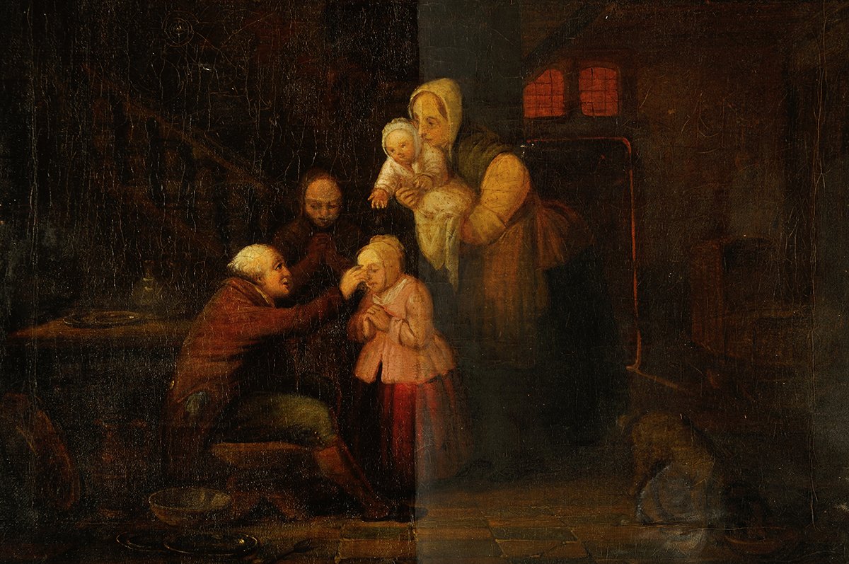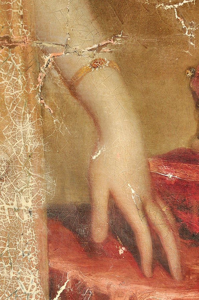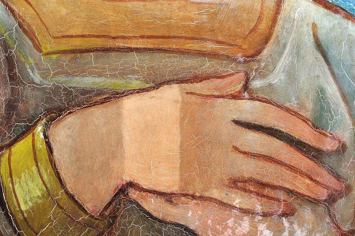 At the time of their creation all old paintings looked different than they do today. This is because paintings are delicate by nature and subject to the natural aging process, deterioration or accidental damage. Changes become particularly apparent in the paint layer, and are determined by such factors as the picture support, the ground, and the chemical composition of the paint layer and varnish. Pigments may fade or change colour, crack patterns develop as the paint dries, contracts and moves with the support. At the same time the varnish layer becomes discoloured. Paintings may also be obscured by unprofessional renovation treatments that conceal the original paint and which can seriously mislead.